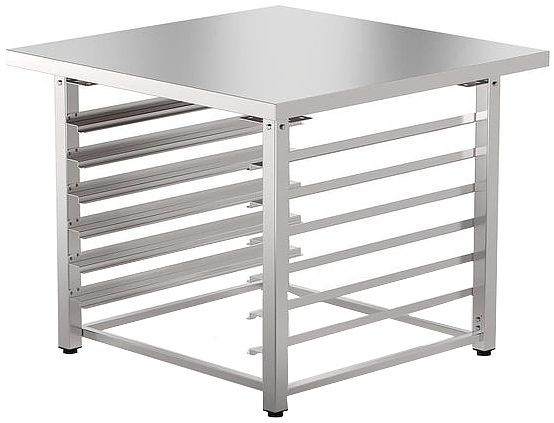 Универсальная подставка GPSteel ПРОФИ ППК 6/850/850/700 П предназначается для установки пароконвектоматов на предприятиях общественного питания, торговли и пищевых производствах. Опоры ножек регулируются по высоте. Материал разборного каркаса - труба из нержавеющей стали AISI 430 (40x40 мм), материал столешницы и направляющих - нержавеющая сталь AISI 430.