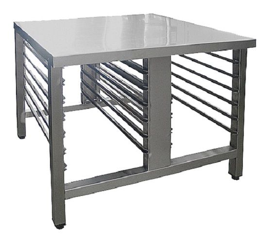 Подставка Пищевые Технологии ПК-12 используется совместно с пароконвектоматами. Модель оснащена регулируемыми по высоте ножками. Каракас выполнен из нержавеющей трубы.