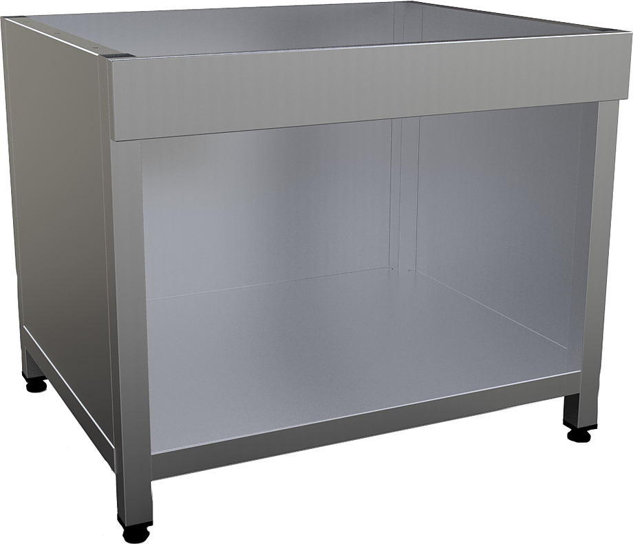 Полузакрытая подставка Кобор P9-4S1 используется для установки индукционной плиты I9-4T. Поставка оснащена регулируемыми по высоте ножками и сплошой полкой, которую можно использовать для хранения кухонного инвентаря. Корпус выполнен из нержавеющей стали AISI 430, каркас - из профильной трубы 40х40 мм.