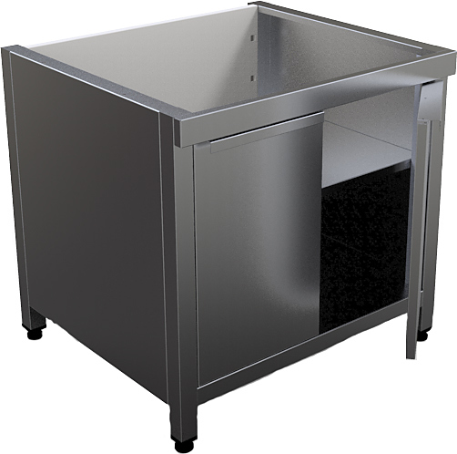Закрытая подставка Кобор P9-4S2 серии 900 используется для установки индукционной плиты I9-4T. Поставка оснащена регулируемыми по высоте ножками и сплошой полкой, которую можно использовать для хранения кухонного инвентаря. Корпус выполнен из нержавеющей стали AISI 430, каркас - из профильной трубы 40х40 мм.