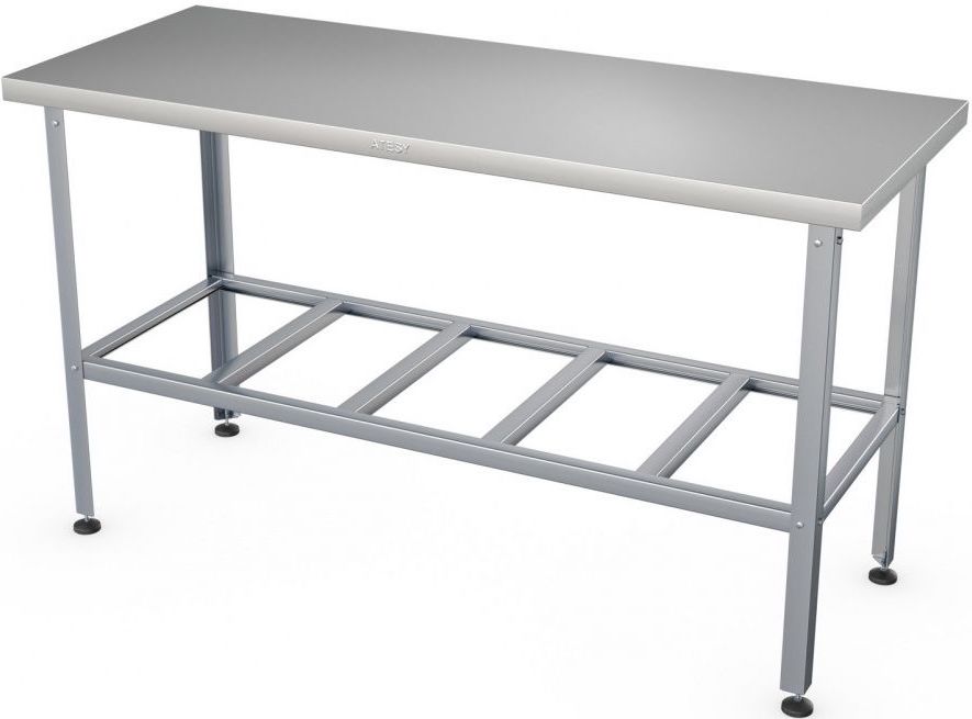 Производственный стол ATESY СР-С-600.600-02 серии Стандарт предназначен для раскатки теста и обработки ингредиентов на предприятиях общественного питания и торговли. Полка-решетка и каркас выполнены из оцинкованной стали толщиной 1,2 мм, столешница - из нержавеющей стали AISI 430 толщиной 0,8 мм, ножки - из нержавеющей стали, опора ножек - из пластика.