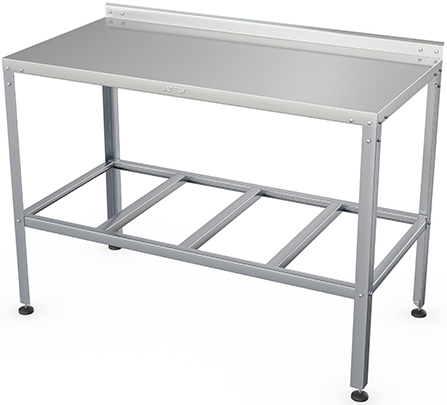 • Все кромки столешницы и элементов каркаса с подгибом (фальцовкой), что полностью исключает получение травмы персоналом при сборке, эксплуатации и санитарной обработке