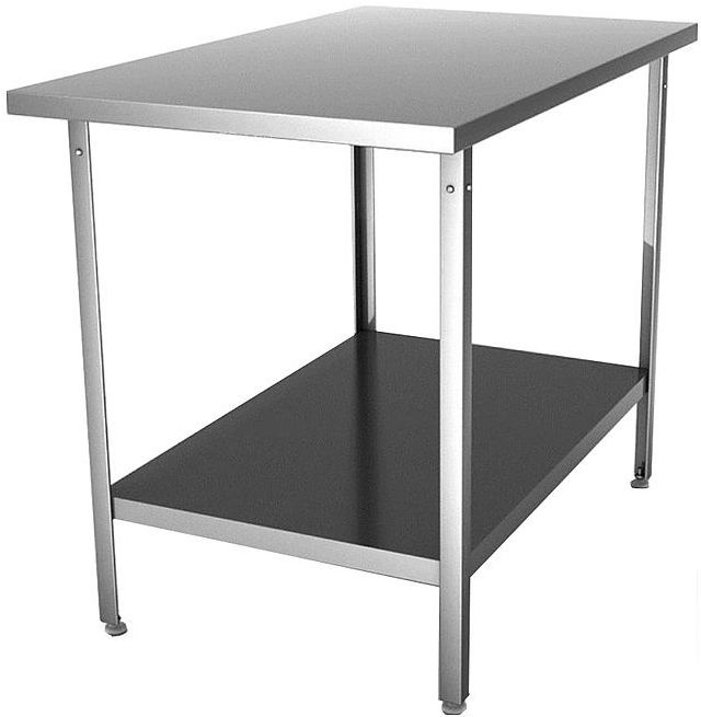 Производственный стол СП-2/900/600-ЮТ предназначен для раскатки теста и обработки ингредиентов для приготовления блюд на предприятиях общественного питания и торговли. Ножки стола регулируются по высоте. Каркас и полка выполнены из оцинкованной стали, столешница - из нержавеющей стали, подложка столешницы - из ЛДСП, ножки - из уголка.