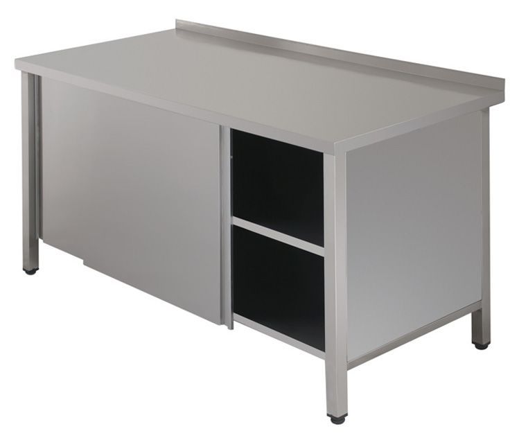 Стол производственный закрытый Simeco СЗE1107БК используется на предприятиях общественного питания и торговли для приготовления различных блюд, а так же для хранения посуды и сыпучих продуктов. Модель закрыта с трех сторон. Имеет двери-купе, сплошную полку из нержавеющей стали и борт высотой 40 мм. Каркас стола выполнен из нержавеющей стали AISI 430, столешница - из нержавеющей стали AISI 430. Ножки - труба 40х40 мм.