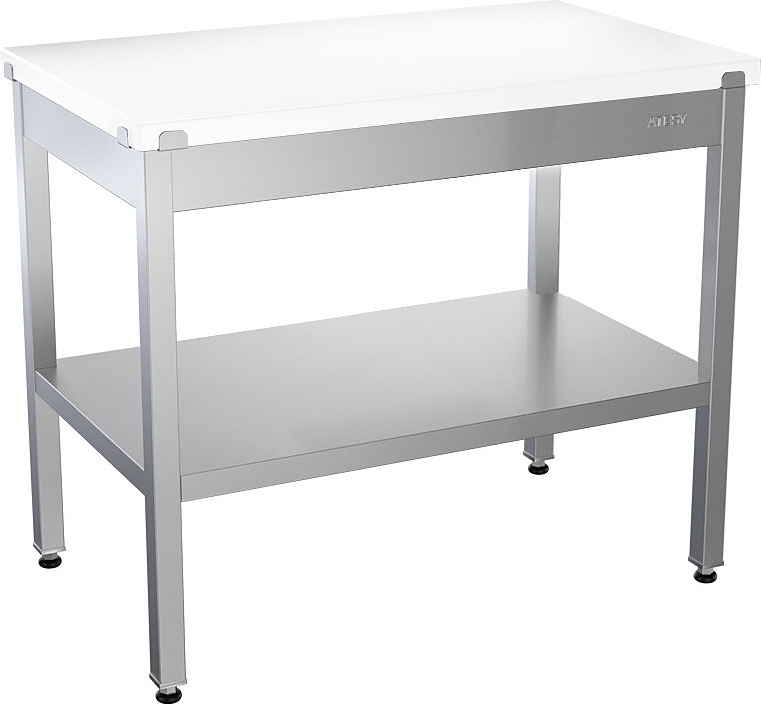 Производственный стол ATESY СРП-Л-1200.600-02 серии Люкс предназначается для разделывания и обработки пищевых продуктов, использования кухонного оборудования на предприятиях общественного питания, торговли и пищевых производствах. Конструкция - разборная, все кромки столешницы и элементов каркаса имеют безопасную фальцовку, углы столешницы заварены и зашлифованы. Опоры ножек регулируются по высоте. Материал полок - нержавеющая сталь AISI 304, материал каркаса - труба 40x40 мм из нержавеющей стали AISI 304, материал столешницы - пенопропилен.