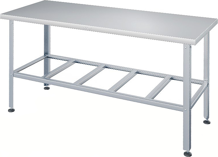- Все кромки столешницы и элементов каркаса имеют подгиб (фальцовку), что полностью исключает возможность получения травмы персоналом при сборке, эксплуатации и санитарной обработке стола