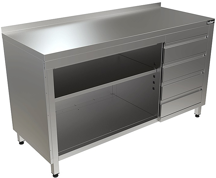 Стол производственный Кобор СТБ/1-120/70/О используется на предприятиях общественного питания, торговли и пищевых производствах для хранения кухонной утвари и обработки различных ингредиентов перед приготовлением. Материал каркаса - высококачественная нержавеющая сталь (труба 40х40 мм), материал столешницы - высококачественная нержавеющая сталь AISI 430, усиленная листом ЛДСП (толщина 16 мм).