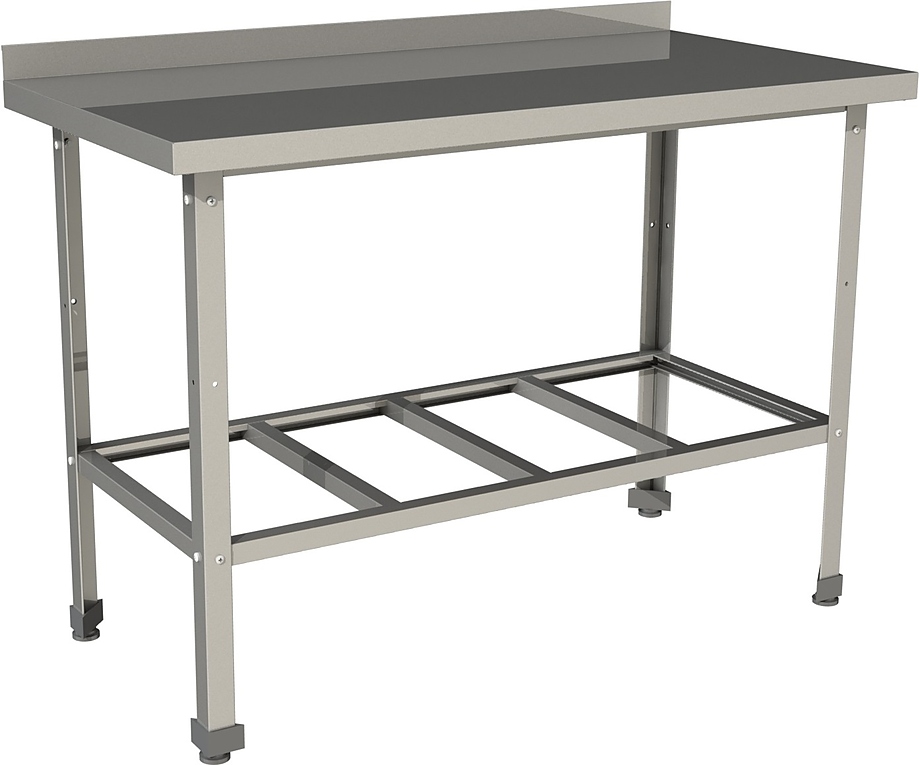 Производственный стол Restoinox СП-7/7-БР-ЭЦ серии 700 предназначен для обработки продуктов питания, раскатки теста, хранения кухонного инвентаря и оборудования на предприятиях общественного питания, торговли и пищевых производствах. Опоры ножек регулируются по высоте. Материал ножек - уголок из оцинкованной стали AISI 430 (40х40 мм), материал рабочей поверхности и решетки - нержавеющая сталь AISI 430.