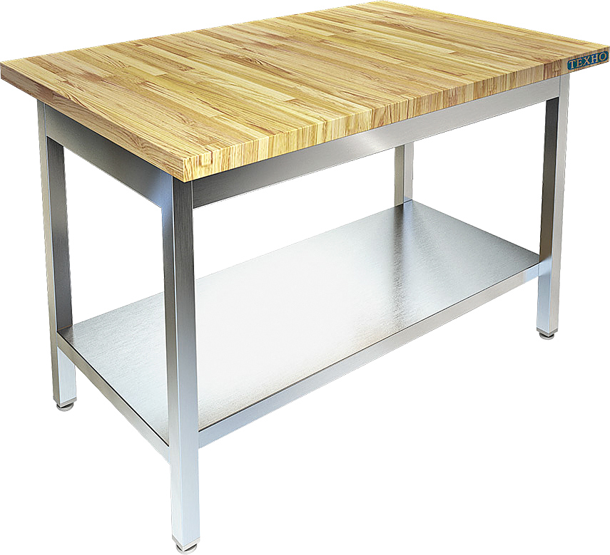 Кондитерский стол Техно-ТТ СП-323/1008 предназначен для раскатки теста и обработки ингредиентов для приготовления кондитерских и хлебобулочных изделий, а также для расстановки и хранения посуды и кухонного инвентаря на предприятиях общественного питания и торговли. Модель оснащена регулируемыми по высоте ножками, что позволяет компенсировать неровности пола. Разборный каркас выполнен из трубы 40х40 мм из нержавеющей стали AISI 304, столешница - из бука толщиной 40 мм.