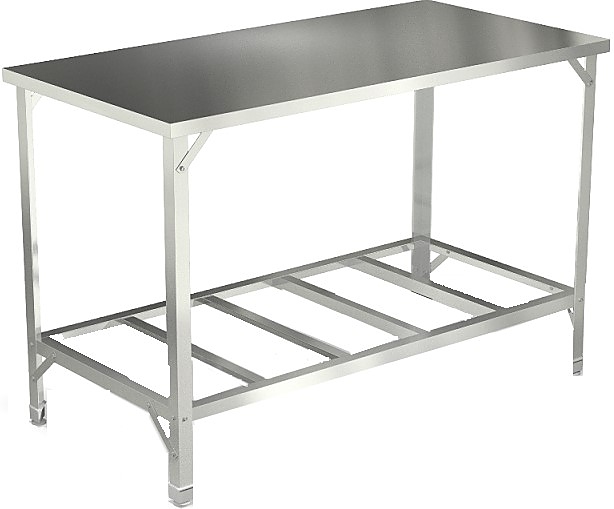 Стол производственный AppetiTT СПРО-606 Н предназначен для раскатки теста, обработки ингредиентов и хранения кухонного инвентаря на предприятиях общественного питания, торговли и пищевых производствах. Материал каркаса - высококачественная нержавеющая сталь AISI 430 толщиной 1.5 мм, материал столешницы - высококачественная нержавеющая сталь AISI 430 толщиной 0.5 мм, материал подложки - ДСП толщиной 16 мм, материал полки-решетки - высококачественная нержавеющая сталь AISI 430 толщиной 0.8 мм.
