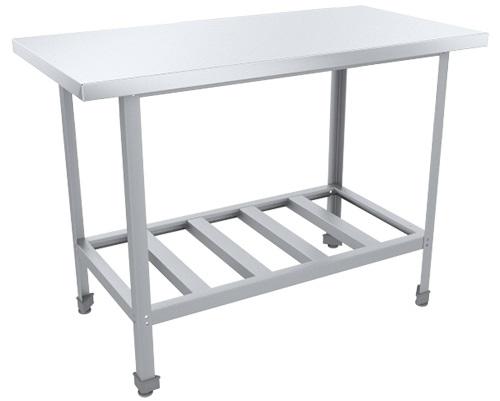 Производственный стол Пищевые Технологии Стандарт СРО-8/7СЦК предназначен для обработки продуктов питания, раскатки теста и хранения кухонного инвентаря на предприятиях общественного питания, торговли и пищевых производствах. Модель оснащена полкой-решеткой и регулируемыми опорами. Материал столешницы - высококачественная нержавеющая сталь AISI 430