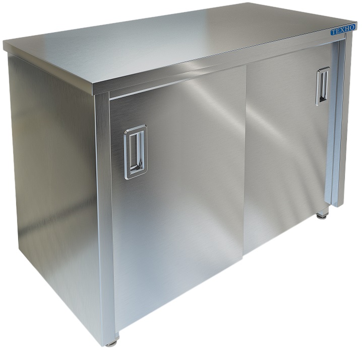 Стол производственный Техно-ТТ СПС-124/1007Н предназначен для разделки и обработки пищевых продуктов, а также для расстановки и хранения посуды и кухонного инвентаря на предприятиях общественного питания и торговли. Модель оснащена дверьми-купе, полкой и регулируемыми опорами. Материал корпуса и дверей - высококачественная нержавеющая сталь AISI 304 толщиной 0.8 мм, столешницы - высококачественная нержавеющая сталь AISI 304, усиленная ЛДСП, полки и задней стенки - высококачественная нержавеющая сталь AISI 430 толщиной 0.8 мм.