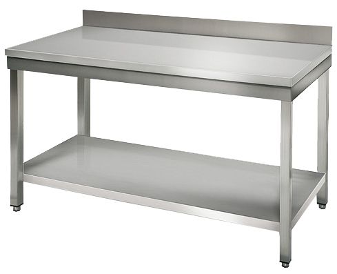 Производственный стол Kocateq SAT186A предназначен для раскатки теста и обработки ингредиентов для приготовления блюд, хранения посуды и кухонной утвари на предприятиях общественного питания и торговли. Столешница выполнена из нержавеющей стали AISI 304 толщиной 1 мм, усилена вкладкой из ДСП с ламинированием открытой сторон, каркас и полка - из нержавеющей стали AISI 201, ножки - из трубы квадратного сечения 40x40 мм, пятки - из пластика.
