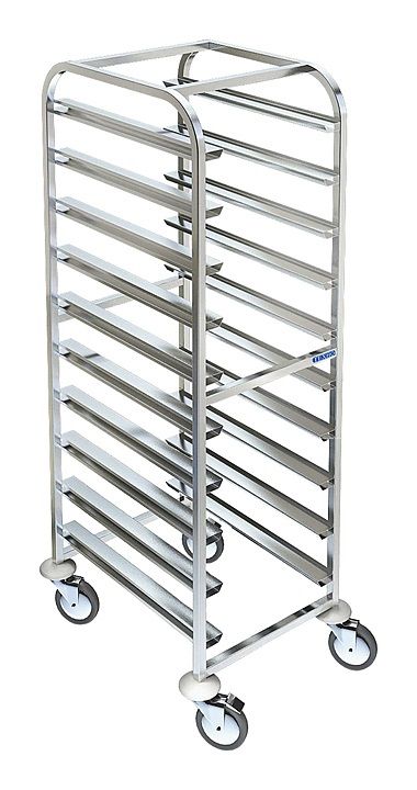 Тележка-шпилька Техно-ТТ СТС-220/604У предназначена для транспортировки и хранения противней и гастроемкостей на предприятиях общественного питания и торговли. Модель оснащена 4 поворотными колёсами, 2 из которых с тормозными устройствами и отбойниками. Каркас выполнен из квадратной трубы 20х20 мм из нержавеющей стали AISI 304, полозки - из нержавеющей стали AISI 304, отбойники - из пластика, колеса покрыты резиной.
