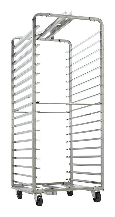Тележка-шпилька Bassanina ROTOR 68 18 к используется совместно с ротационными печами с крюком для размещения и загрузки тестовых заготовок. Аксессуар поставляется в разборном виде. Конструкция выполнена из трубчатого профиля 25х25 мм из нержавеющей стали AISI 304, поворотные колеса с двойным комплектом шариков - из термостойкого полимера, с втулкой из нержавеющей стали и муфтой из тефлона.
