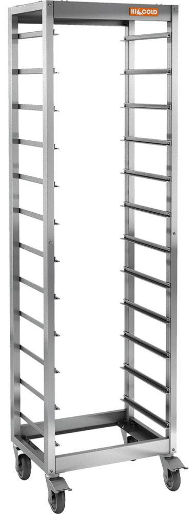 Тележка-шпилька HICOLD НТШ4Т-1/12 (GN-1/1) предназначена для хранения гастроемкостей в пекарнях и кондитерских цехах. Данное оборудование из нержавеющей стали AISI 430 оснащено каркасом-трубой, 12 уровнями и 4 прорезиненными колесами с двумя блокаторами, защищающими пол от царапин. Особенностями тележки являются высокая маневренность и идеальное проектирование.