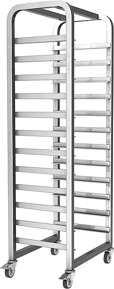 Тележка-шпилька Hessen ТШГ-12 используется на предприятиях пищевой промышленности, общественного питания и торговли для хранения и транспортировки противней, подносов и гастроемкостей. Модель оснащена тормозами. Изделие произведено с использованием программы Technology without Injuries - комплекса технологических решений, направленных на уменьшение травмоопасности для персонала, работающего на оборудовании. Тележка полностью выполнена из углеродистой стали, покрытой полимерной краской.