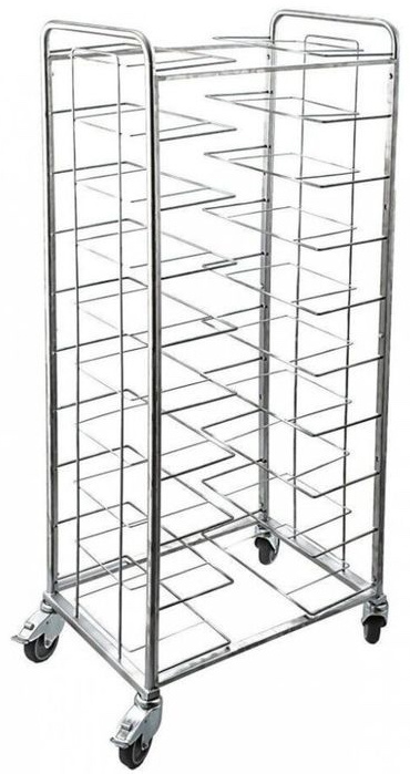 Односекционная тележка Rada ТШ5-1/10Н предназначена для транспортировки подносов с посудой, а так же продуктов на противнях на предприятиях общественного питания. Изделие изготовлено из нержавеющей стали AISI 304.