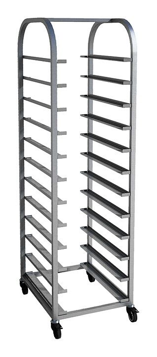 Тележка-шпилька Gastrolux Ш1-GN/12/Р используется на предприятиях общественного питания и торговли, в пекарнях, кондитерских и промышленно-производственных помещениях для транспортировки противней. Каркас выполнен из нержавеющей стали AISI 430.