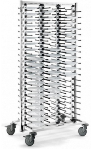 Тележка Blanco GASTRO 120 предназначена для размещения и удобного перемещения тарелок на предприятиях общественного питания для обслуживания банкетов и мероприятий. Модель оснащена бесступенчатой настройкой для тарелок размером до 300 мм и поворачивающимися роликами для легкого передвижения, 2 из которых имеют тормоза для фиксации тележки.