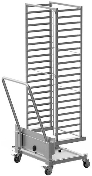 Тележка ITERMA СТР-65К-750/595/1740 П20 XEVTL-2011 используется совместно с пароконвектоматами серии ChefTop MIND.Maps на предприятиях общественного питания и торговли, в пекарнях и кондитерских для удобного перемещения листов для выпечки и гастроемкостей.