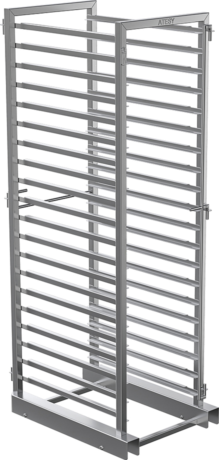 Шпилька ATESY для АПК-20-1.1-03-1 используется на предприятиях общественного питания и торговли для размещения на ней гастроемкостей и последующей установки в рабочую камеру пароконвектомата ATESY Рубикон АПК-20-1.1-03-01. Модель оснащена специальными запорными механизмами для надежной фиксации в камере пароконвектомата и на тележке. Изделие выполнено из нержавеющей стали AISI 304 толщиной 1,5 мм.
