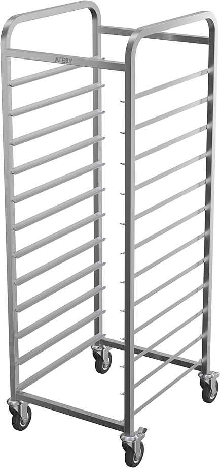 Тележка-шпилька ATESY КШ-Л-1.12-470.580-02 серии Люкс предназначается для временного хранения и перемещения противней между линиями раздачи готовых блюд и кухней на предприятиях общественного питания, торговли и пищевых производствах. Тележка оснащена 4 поворотными колесами (2 с тормозами), кромками с безопасным подгибом. Тип конструкции - сварная, стойки из труб квадратного сечения. Материал конструкции - нержавеющая сталь AISI 304.