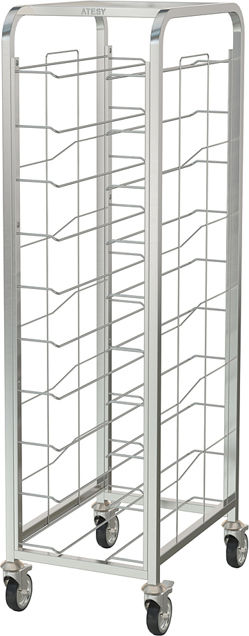 Тележка-шпилька ATESY КШП-Л-1.10-350.600-02 серии Люкс предназначается для временного хранения и перемещения противней между линиями раздачи готовых блюд и кухней на предприятиях общественного питания, торговли и пищевых производствах. Тележка оснащена 4 поворотными колесами (2 с тормозами), кромками с безопасным подгибом. Тип конструкции - сварная, стойки из труб квадратного сечения. Материал конструкции - нержавеющая сталь AISI 304.