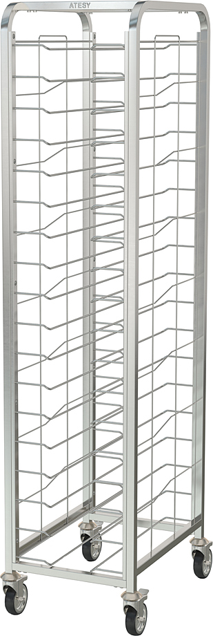 Тележка-шпилька ATESY КШП-Л-1.18-350.600-02 серии Люкс предназначается для временного хранения и перемещения гастроемкостей между линиями раздачи готовых блюд и кухней на предприятиях общественного питания, торговли и пищевых производствах. Тележка оснащена 4 поворотными колесами (2 с тормозами), кромками с безопасным подгибом. Тип конструкции - сварная, стойки из труб квадратного сечения. Материал конструкции - нержавеющая сталь AISI 304.