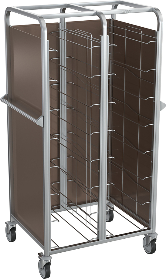 Тележка-шпилька ATESY КШП-Л-2.8-330.600-02-ОК серии Люкс предназначается для временного хранения и перемещения гастроемкостей между линиями раздачи готовых блюд и кухней на предприятиях общественного питания, торговли и пищевых производствах. Тележка оснащена 4 поворотными колесами (2 с тормозами), кромками с безопасным подгибом. Тип конструкции - сварная, стойки из труб квадратного сечения. Материал конструкции - нержавеющая сталь AISI 304.