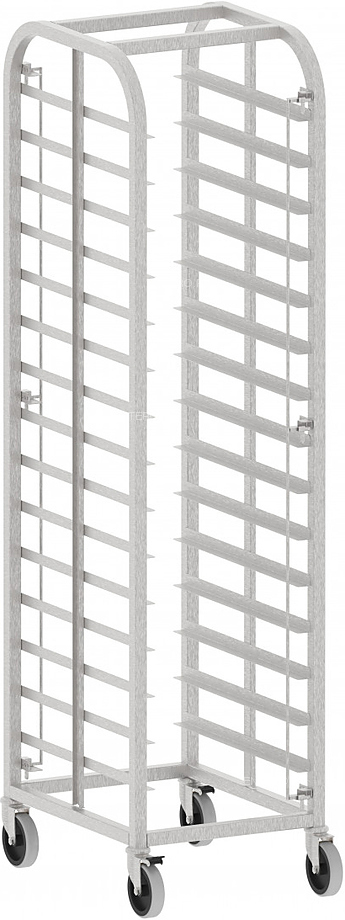 Тележка-шпилька Abat ТШГ-15 используется на предприятиях общественного питания, торговли и пищевых производствах для перемещения противней и гастроемкостей совместно с конвекционными печами КПП-4П, КПП-4Э, КПП-4М, КПП-4ЭМ. Тип каркаса - сварной, тележка установлена на 4 обрезиненных поворотных колеса (2 с тормозными устройствами). Материал изделия - нержавеющая сталь.