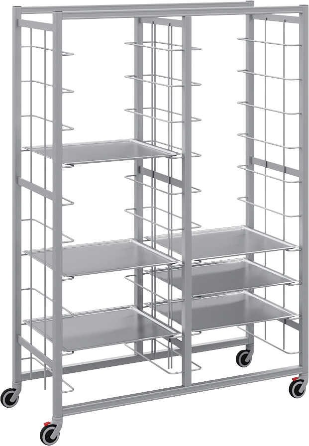 Тележка-шпилька POLAIR LOAD.ME.KITCHEN KE16.20.57.85D используется на предприятиях общественного питания, торговли и пищевых для хранения и транспортировки подносов. Модель оснащена поворотными колесиками и стопорами. Материал рамы - анодированный алюминий, материал направляющих - высококачественная нержавеющая сталь.