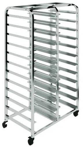 Тележка-шпилька Restoinox ТШCПР-12х2 (600x400 мм) предназначается для перемещения подносов и противней на предприятиях общественного питания, торговли и пищевых производствах. Тележка установлена на колесах, 2 оснащены стопорным механизмом. Материал разборного каркаса - нержавеющая сталь AISI 430 (труба 25х25 мм), материал направляющих - нержавеющая сталь AISI 430.