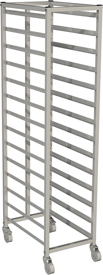 Тележка-шпилька Restoinox ТШРГ-14 (GN 1/1) предназначается для перемещения подносов и противней на предприятиях общественного питания, торговли и пищевых производствах. Тележка установлена на колесах, 2 оснащены стопорным механизмом. Материал разборного каркаса - нержавеющая сталь AISI 430 (труба 25х25 мм), материал направляющих - нержавеющая сталь AISI 430.