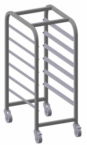 Тележка-шпилька Restoinox ТШРГР-6 (GN 1/1) предназначается для перемещения подносов и противней на предприятиях общественного питания, торговли и пищевых производствах. Тележка установлена на колесах, 2 оснащены стопорным механизмом. Материал разборного каркаса - нержавеющая сталь AISI 430 (труба 25х25 мм), материал направляющих - нержавеющая сталь AISI 430.