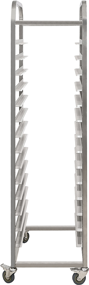 Тележка-шпилька Luxstahl ТШГ-15 используется на предприятиях пищевой промышленности, общественного питания и торговли для хранения и транспортировки противней. Модель оснащена обрезиненными поворотными колесами с тормозами. Материал изделия - высококачественная нержавеющая сталь.