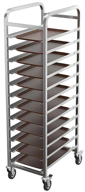 Тележка-шпилька KAYMAN СШ-14/1236-А используется на предприятиях общественного питания, торговли и пищевых производствах для размещения и перемещения подносов. Модель оснащена надежной фиксацией и 4 колесами, 2 из которых с тормозами. Материал изделия - высококачественная нержавеющая сталь AISI 304 (труба 25х25 толщиной 1,5 мм.).