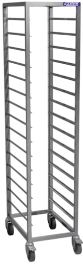 Тележка-шпилька КАМИК Шп-465516 предназначена для транспортировки посудомоечных кассет размером 500х500 мм на предприятиях общественного питания, торговли и пищевых производствах. Модель оснащена прорезиненными колесами, 2 из которых с тормозами. Материал изделия - высококачественна нержавеющая сталь AISI 430 (профиль 25х25 мм).