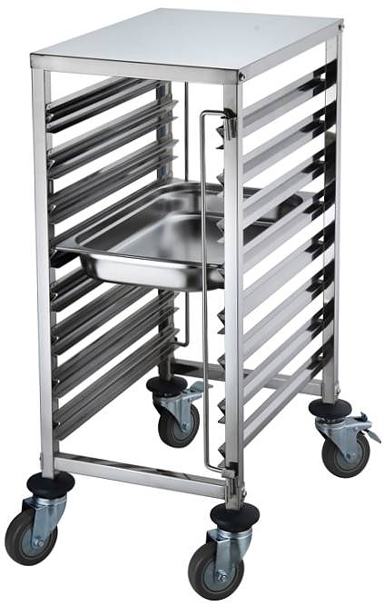 Тележка-шпилька REDGASTRO TR-6AT используется для хранения и перемещения гастроемкостей GN 1/1 на предприятиях общественного питания, торговли и пищевых производствах. Модель оснащена столешницей и поворотными колесами, 2 из которых с тормозными механизмами диаметром 100 мм. Материал каркаса - высококачественная нержавеющая сталь AISI 201.