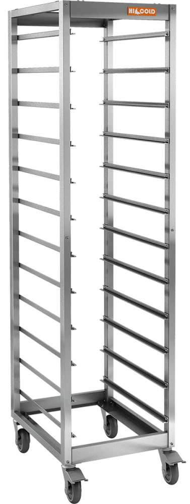 Тележка-шпилька HICOLD НТШ2Т-1/12 предназначена для хранения листов для выпечки в пекарнях и кондитерских цехах. Данное оборудование из нержавеющей стали AISI 430 оснащено каркасом-трубой, 12 уровнями и 4 прорезиненными колесами с двумя блокаторами, защищающими пол от царапин. Особенностями тележки являются высокая маневренность и идеальное проектирование.