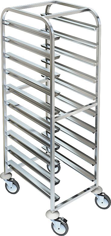 Тележка-шпилька KAYMAN СШ-11/101 используется на предприятиях общественного питания и торговли, а также в промышленно-производственных заведениях для транспортировки и хранения гастроемкостей и противней. Каркас и направляющие выполнены из нержавеющей стали AISI 304.