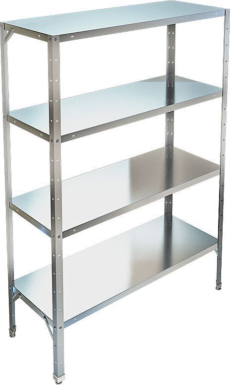 Кухонный стеллаж Техно-ТТ СТР-314/2004 используется на предприятиях общественного питания, торговли и пищевых производствах для хранения посуды, кухонного инвентаря и продуктов. В модели предусмотрены регулируемые ножки и полки. Тип каркаса - разборный, полки - сплошные. Материал каркаса - крашеный металл (уголок 40х40 мм толщиной 2 мм), материал полок - нержавеющая сталь AISI 430 (толщина 0.8 мм).