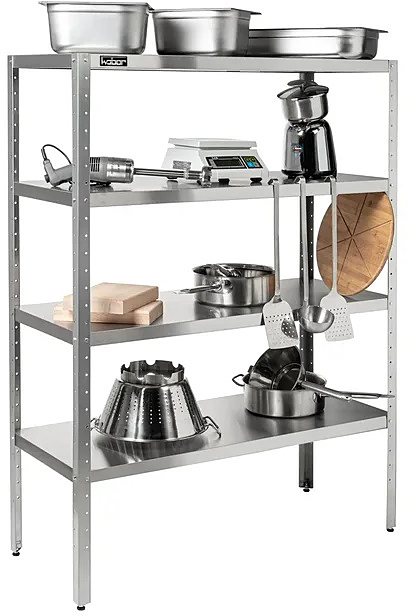 Стеллаж Кобор СК-95/40/430 используется на предприятиях общественного питания, торговли и в промышленно-производственных помещениях для хранения посуды, кухонной утвари и сухих продуктов. Каркас выполнен в виде уголка 40х40 мм из нержавеющей стали, полки - из нержавеющей стали AISI 430. Уникальная система крепления полок обеспечивает жёсткость конструкции стеллажа. Тип стеллажа - разборный. Ножки регулируются по высоте, что помогает избежать неустойчивости рабочей конструкции. Опоры регуляторов высоты не подвержены коррозии во влажной среде.