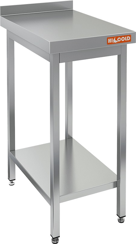 Столешница выполнена из нержавеющей стали толщиной 0,8 мм, усилена листом ДСП, опорные ножки - из трубы 40х40 мм из нержавеющей стали.