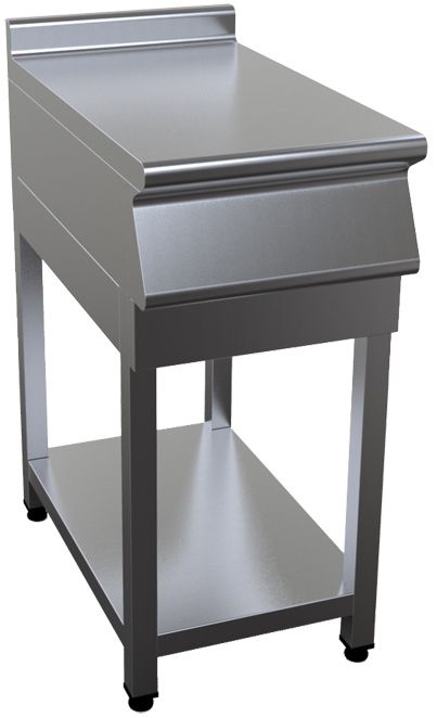 Открытый нейтральный модуль Кобор N7-4O предназначен для использования в составе тепловой линии в качестве дополнительного места для обработки ингредиентов для приготовления блюд, установки оборудования и приборов. Модуль оснащен сплошной полкой и регулируемыми по высоте ножками. Корпус выполнен из нержавеющей стали AISI 430, каркас - из профильной трубы 40х40 мм.
