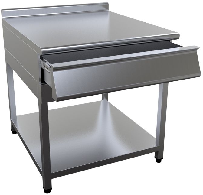 Открытый нейтральный модуль Кобор N7-5OB предназначен для использования в составе тепловой линии в качестве дополнительного места для обработки ингредиентов для приготовления блюд, установки оборудования и приборов, хранения посуды и кухонных принадлежностей. Модуль оснащен выдвижным ящиком, сплошной полкой и регулируемыми по высоте ножками. Корпус выполнен из нержавеющей стали AISI 430, каркас - из профильной трубы 40х40 мм.
