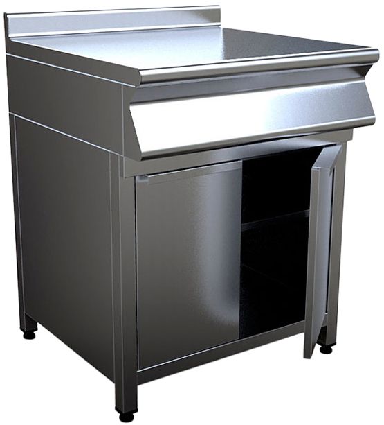 Закрытый нейтральный модуль Кобор N7-7E предназначен для использования в составе тепловой линии в качестве дополнительного места для раскатки теста, обработки ингредиентов для приготовления блюд, установки оборудования и приборов. Модуль оснащен сплошной полкой, распашными дверцами и регулируемыми по высоте ножками. Корпус выполнен из нержавеющей стали AISI 430, каркас - из профильной трубы 40х40 мм.