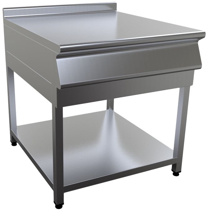 Открытый нейтральный модуль Кобор N9-6O предназначен для использования в составе тепловой линии в качестве дополнительного места для раскатки теста, обработки ингредиентов для приготовления блюд, установки оборудования и приборов. Модуль оснащен сплошной полкой и регулируемыми по высоте ножками. Корпус выполнен из нержавеющей стали AISI 430, каркас - из профильной трубы 40х40 мм.