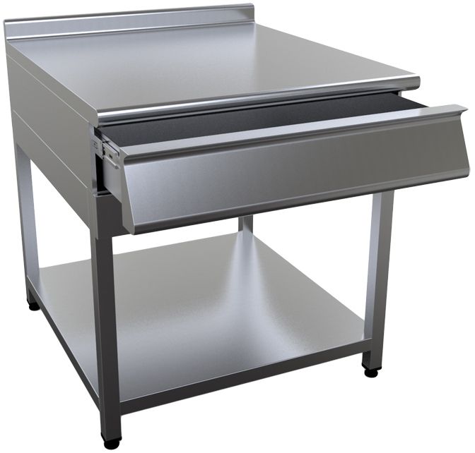 Открытый нейтральный модуль Кобор N9-6OB предназначен для использования в составе тепловой линии в качестве дополнительного места для раскатки теста, обработки ингредиентов для приготовления блюд, установки оборудования и приборов, хранения посуды и кухонных принадлежностей. Модуль оснащен выдвижным ящиком, сплошной полкой и регулируемыми по высоте ножками. Корпус выполнен из нержавеющей стали AISI 430, каркас - из профильной трубы 40х40 мм.