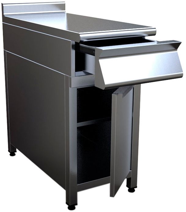 Закрытый нейтральный модуль Кобор N9-6EB предназначен для использования в составе тепловой линии в качестве дополнительного места для раскатки теста, обработки ингредиентов для приготовления блюд, установки оборудования и приборов. Модуль оснащен выдвижным ящиком, сплошной полкой, распашной дверцей и регулируемыми по высоте ножками. Корпус выполнен из нержавеющей стали AISI 430, каркас - из профильной трубы 40х40 мм.